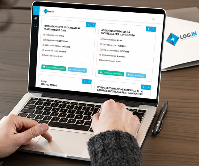 La formazione è anche on-line. Potrai formare i tuoi dipendenti direttamente dalla tua sede. Scopri i nostri corsi in e-learning e inizia in qualunque momento accedendo dal dispositivo che preferisci: smartphone, tablet, pc e 24 ore su 24.